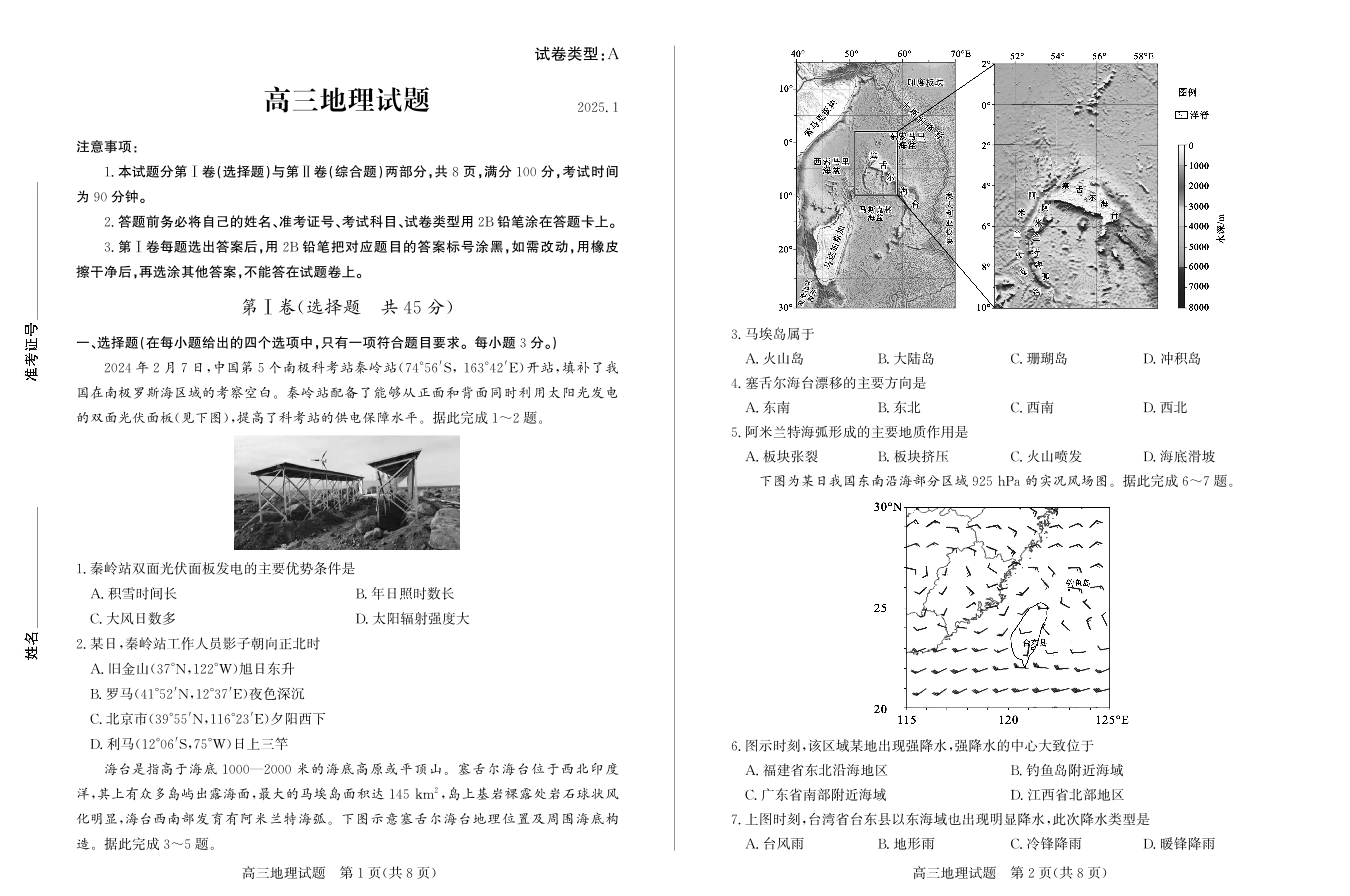 山东省滨州市2025届高三上学期1月期末考试 地理.pdf