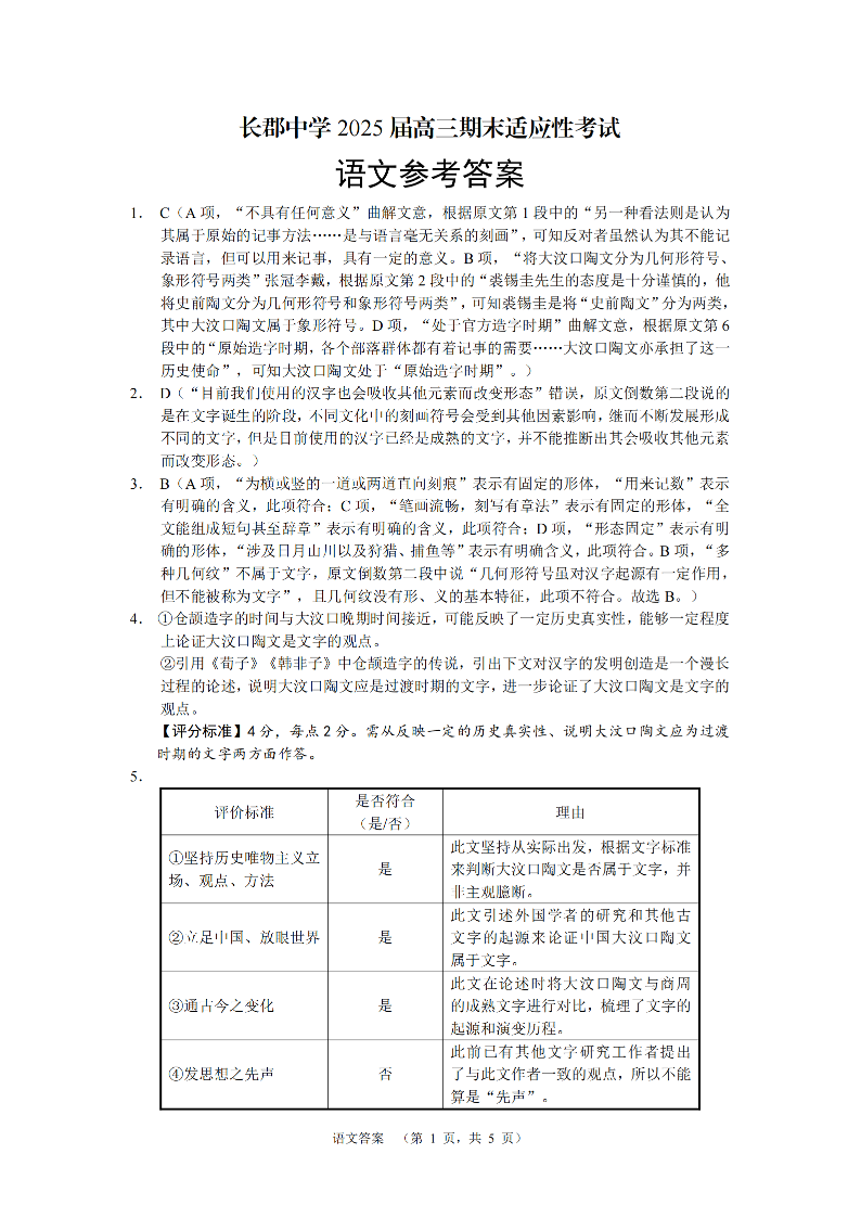 湖南省长郡中学2025届高三期末适应性考试 语文答案.pdf
