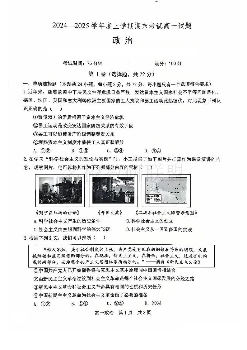 辽宁省普通高中2024-2025学年高一上学期1月期末考试 政治.pdf