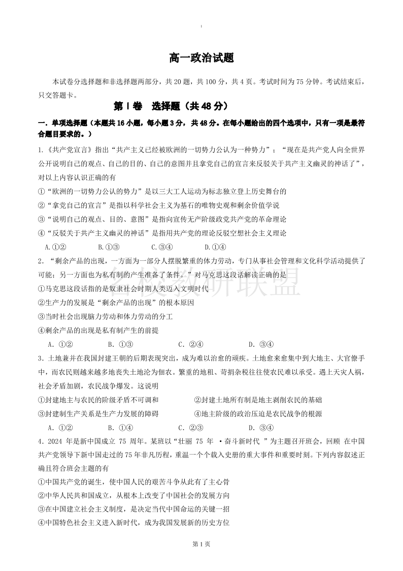 吉林省“BEST合作体”2024-2025高一学年上学期期末考试 政治.pdf
