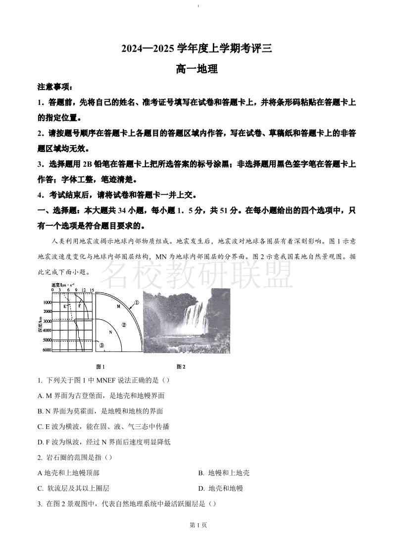河北省保定市2024-2025学年高一上学期12月考评三 地理.pdf