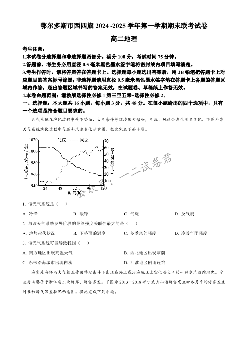 内蒙古鄂尔多斯市西四旗2024-2025学年高二上学期期末联考 地理.pdf