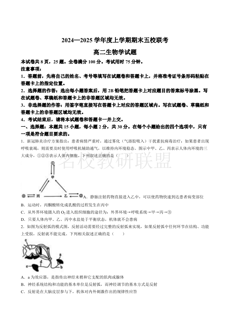 吉林省松原市五校2024-2025学年高二上学期期末联考 生物.pdf