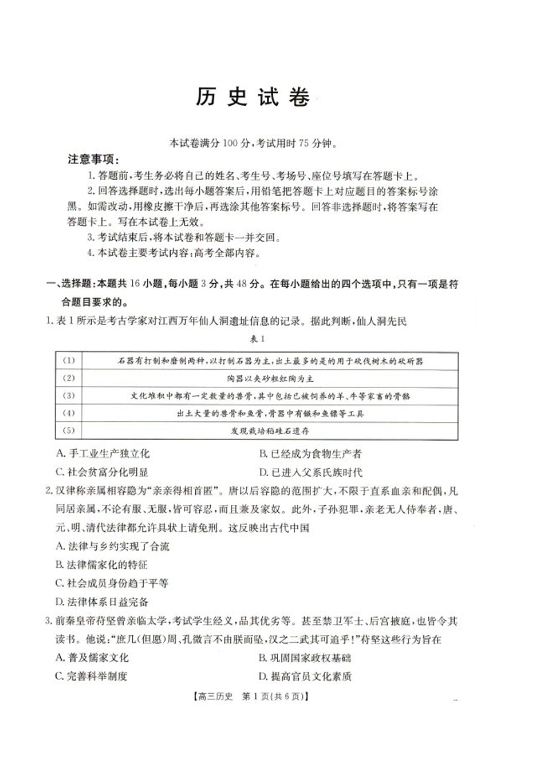 辽宁省抚顺市省重点高中六校2025届高三上学期期末考试 历史.pdf