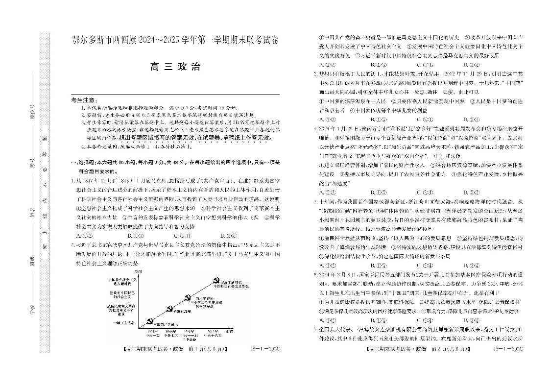 内蒙古鄂尔多斯市西四旗2025届高三上学期期末联考 政治.pdf