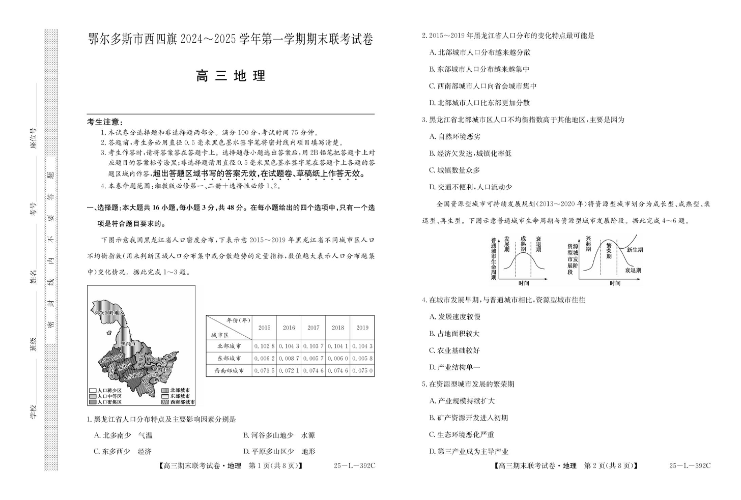 内蒙古鄂尔多斯市西四旗2025届高三上学期期末联考 地理.pdf
