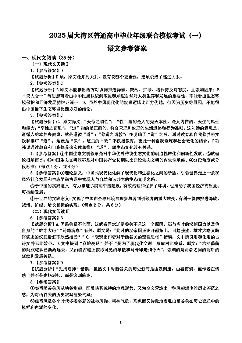 2025届广东省大湾区普通高中毕业年级联合模拟考试(一)语文答案.pdf