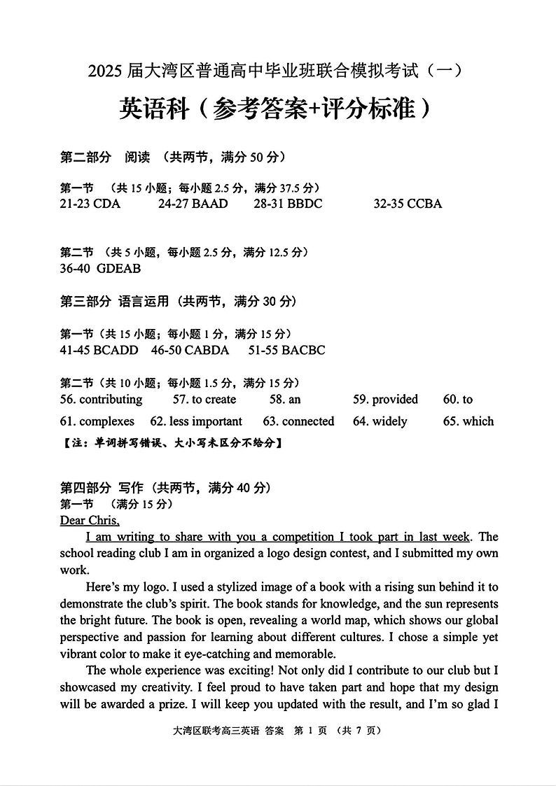 2025届广东省大湾区普通高中毕业年级联合模拟考试(一)英语答案.pdf