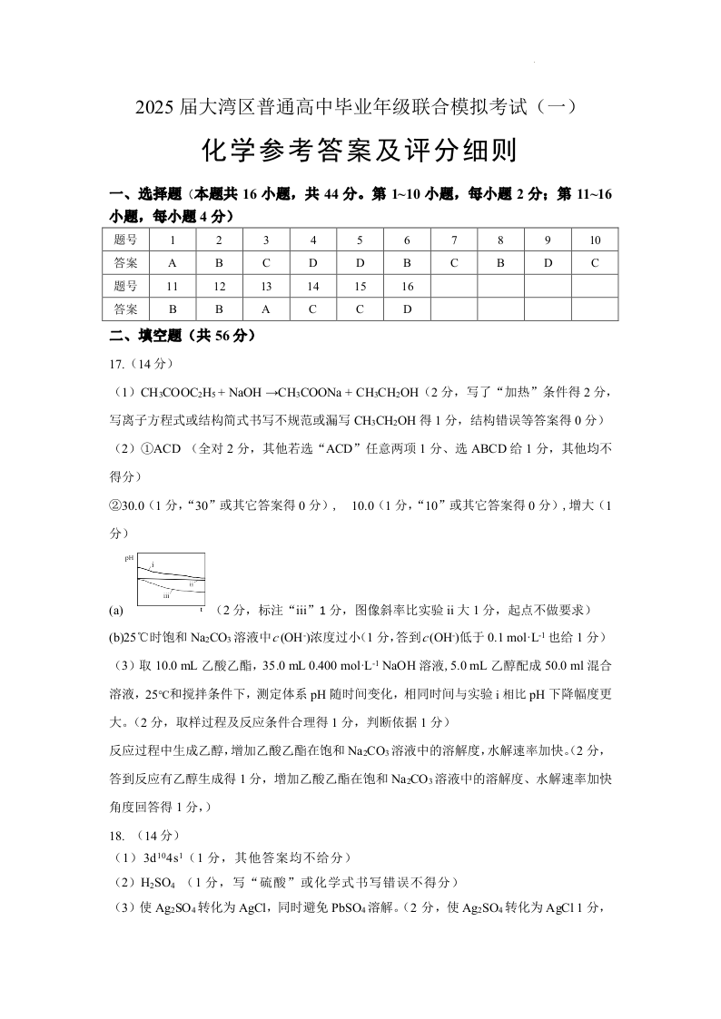 2025届广东省大湾区普通高中毕业年级联合模拟考试(一)化学答案.pdf
