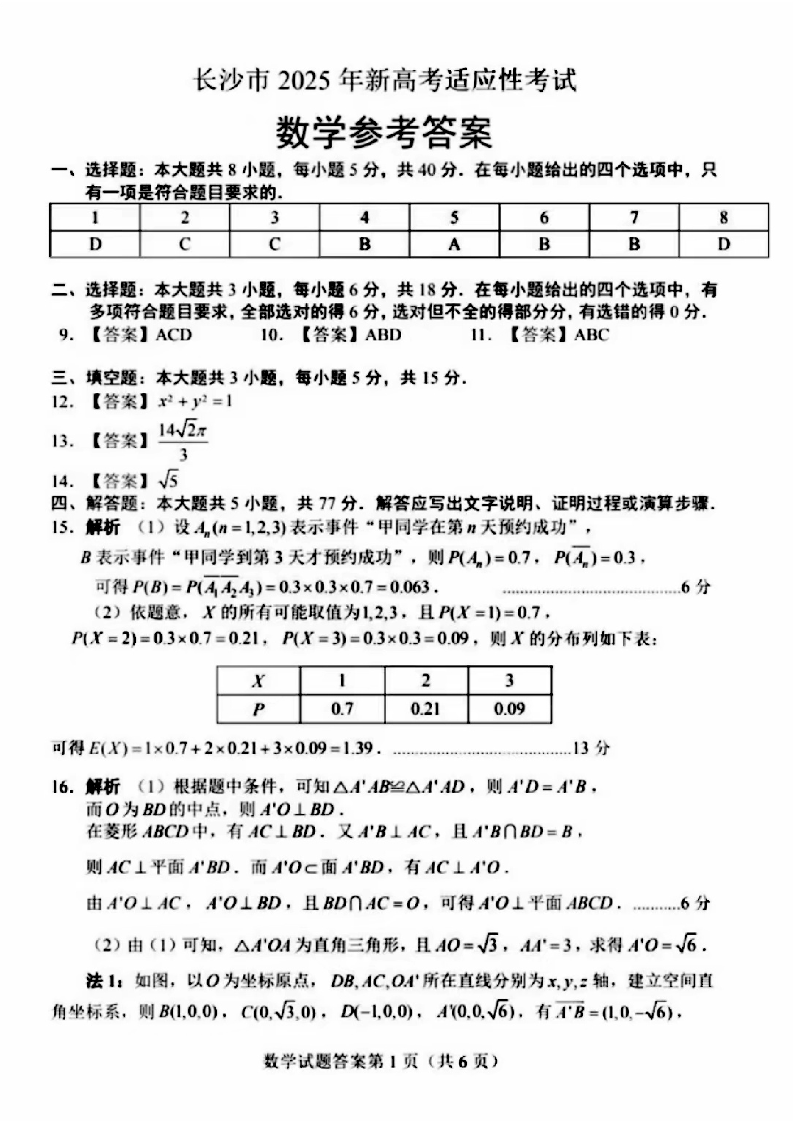 2025届湖南省长沙市高三上学期第一次适应性考试 数学参考答案.pdf