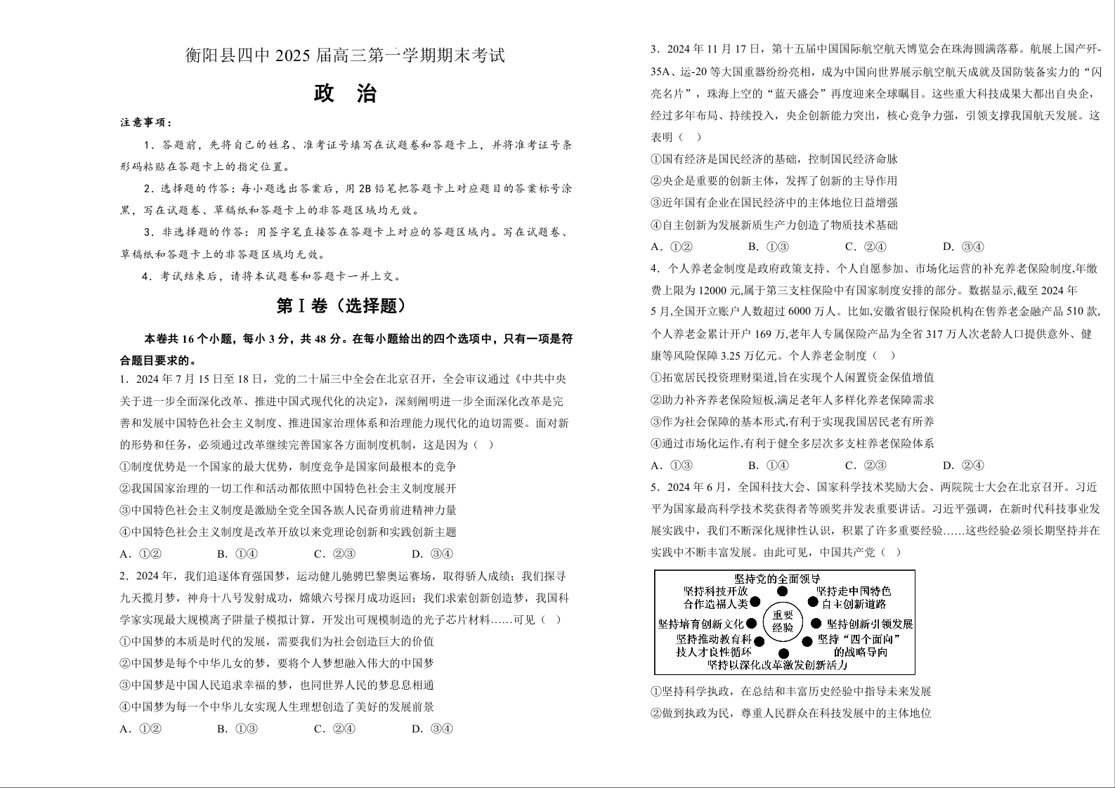 湖南省衡阳市衡阳县四中2025届高三第一学期期末考试 政治.docx