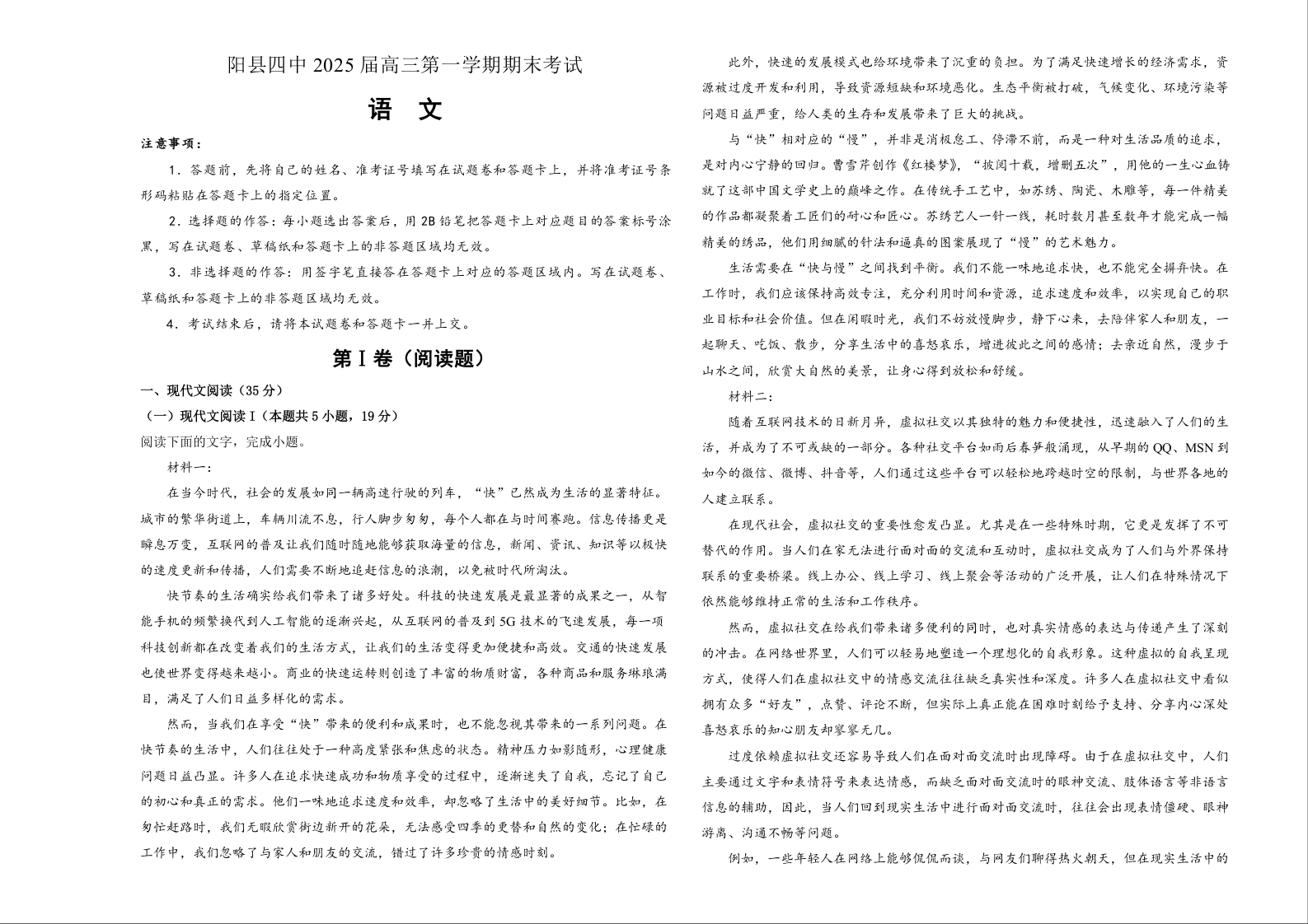 湖南省衡阳市衡阳县四中2025届高三第一学期期末考试 语文.docx