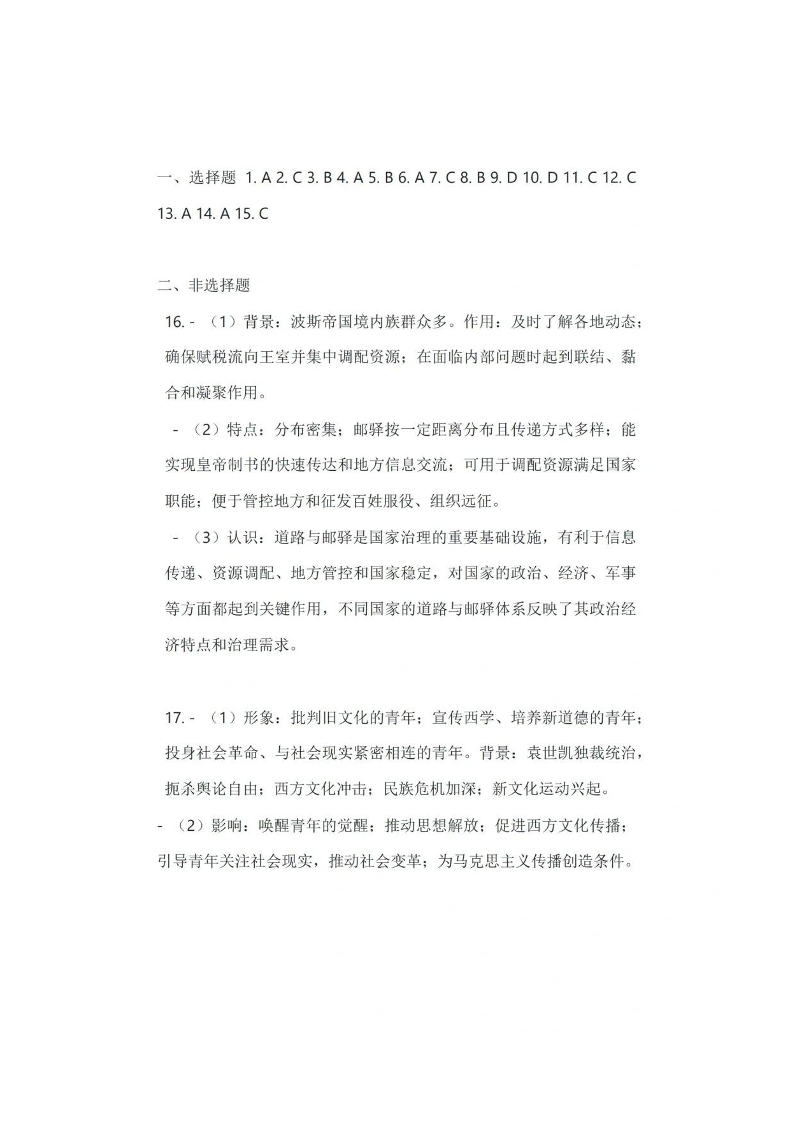 苏州市2025届高三第一学期学业期末质量阳光指标调研卷 历史答案.pdf