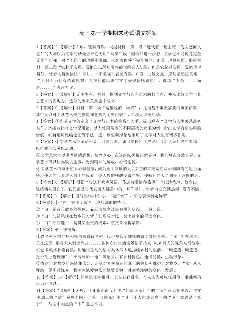 运城市2024-2025学年第一学期期末调研测试 语文答案.docx