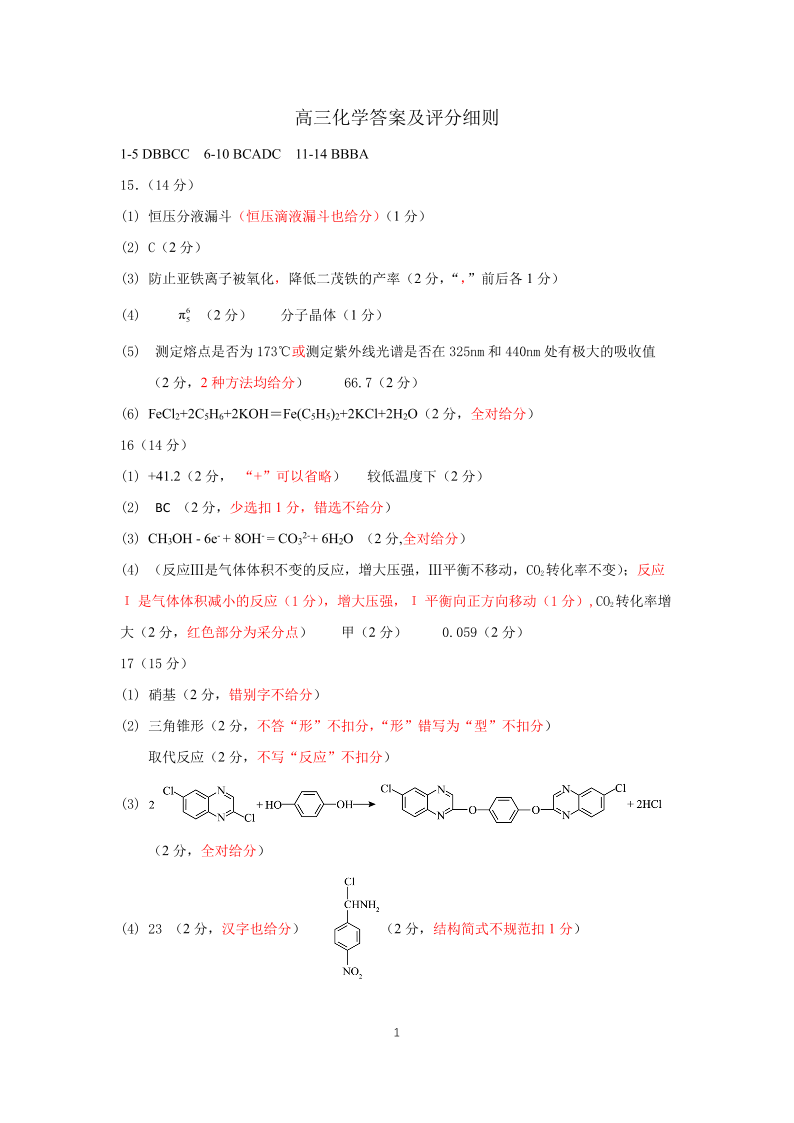 运城市2024-2025学年第一学期期末调研测试 化学答案.pdf