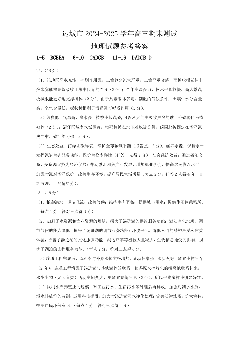 运城市2024-2025学年第一学期期末调研测试 地理答案.docx