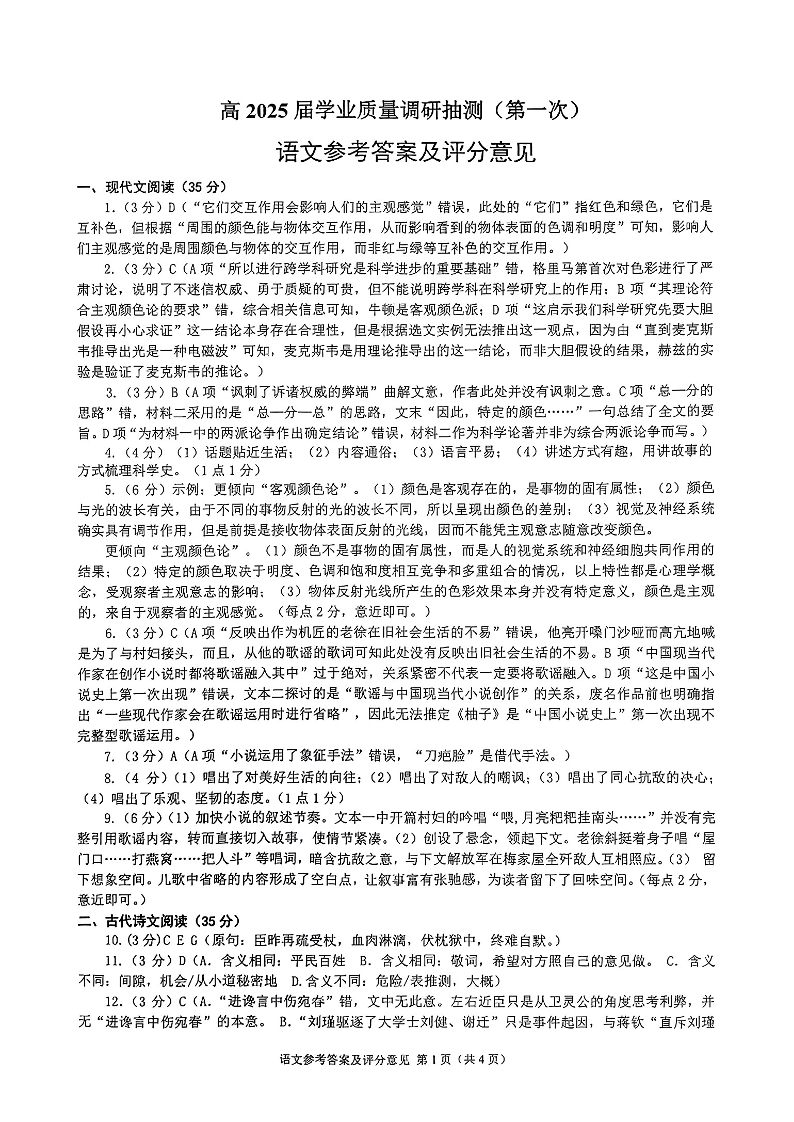 重庆市主城五区高2025届学业质量调研抽测(第一次)语文答案.pdf