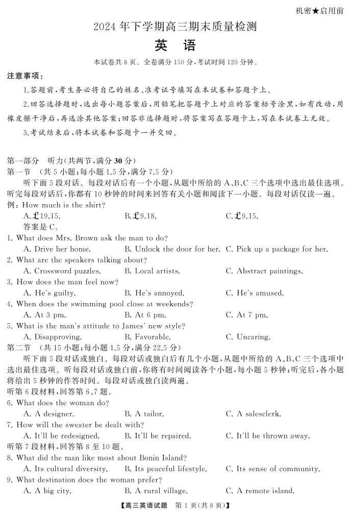 湖南省永州市2025年高考第二次模拟考试 英语.pdf