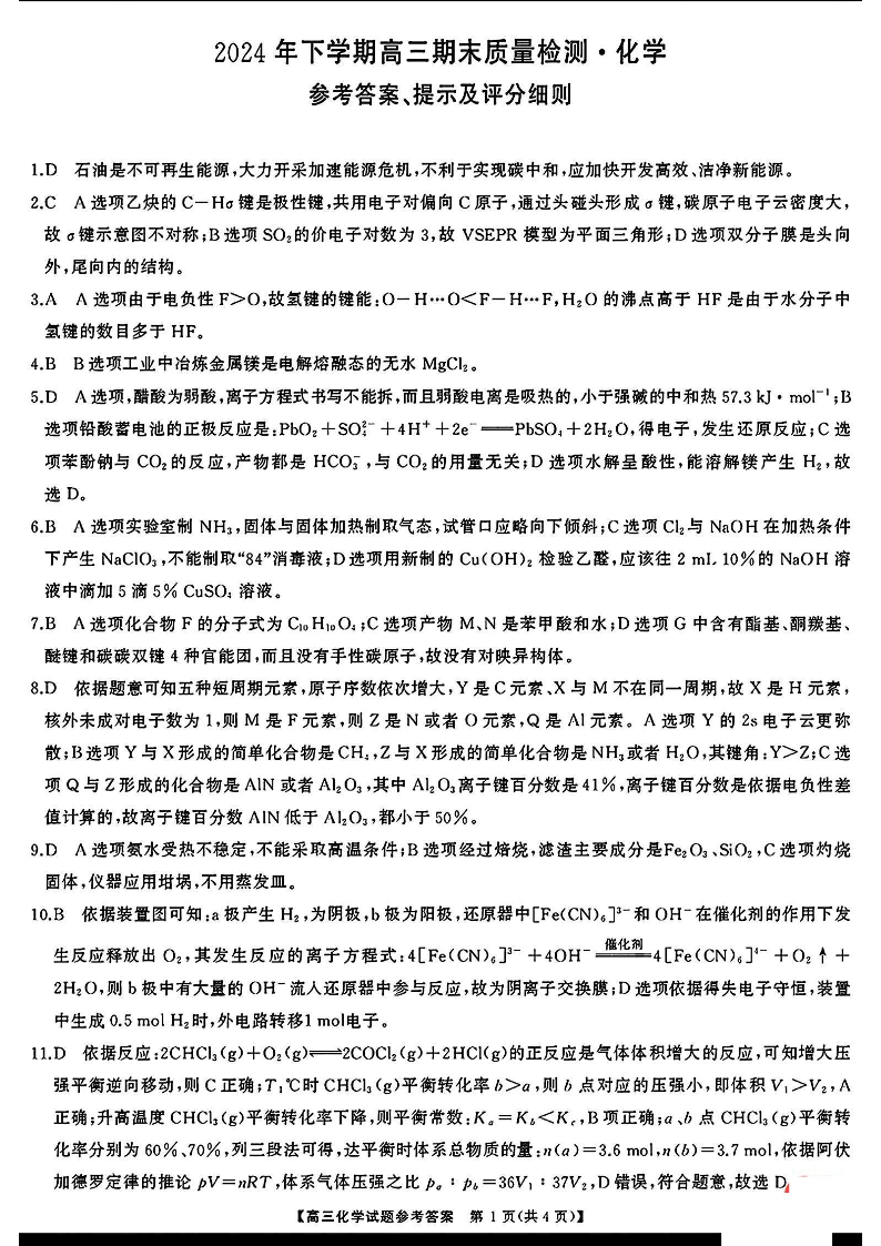 湖南省永州市2025年高考第二次模拟考试 化学答案.pdf