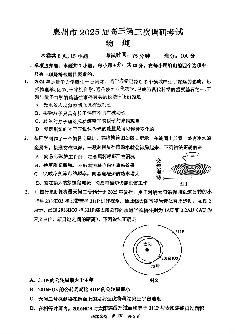 广东省惠州市2025届高三第三次调研考试 物理.pdf
