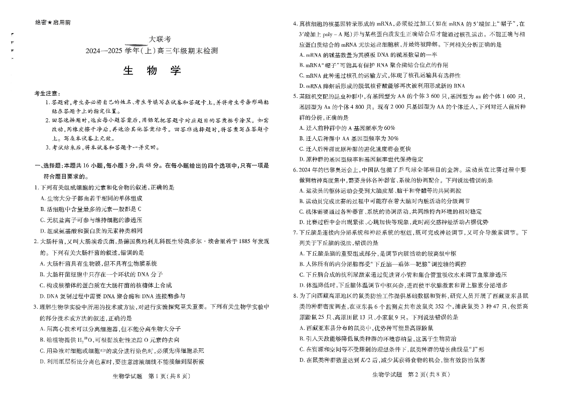 河南省天一大联考2025届高三上学期1月期末检测 生物.pdf
