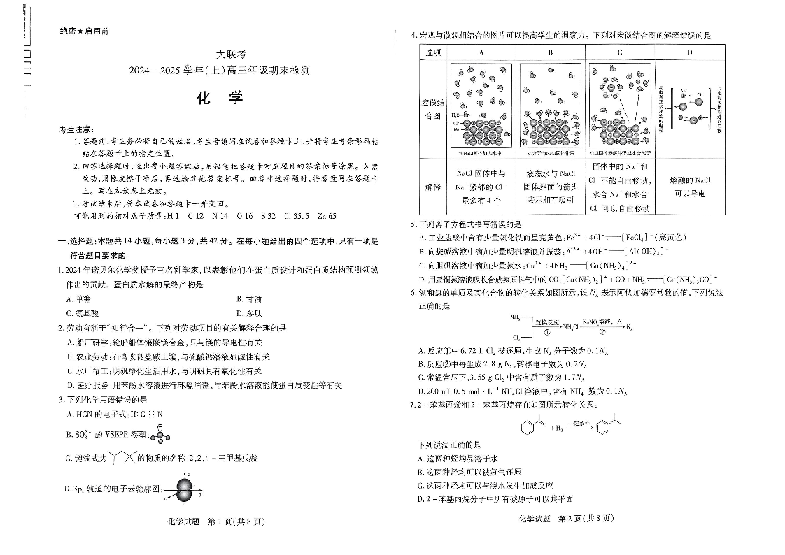 河南省天一大联考2025届高三上学期1月期末检测 化学.pdf