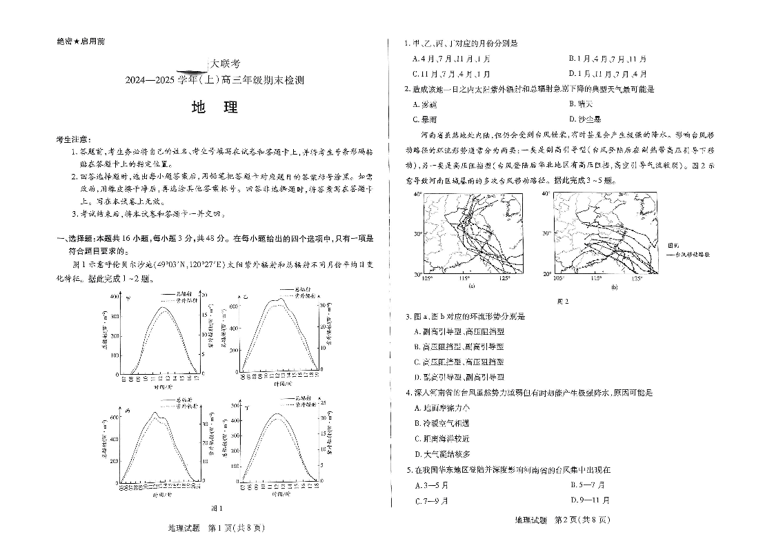 河南省天一大联考2025届高三上学期1月期末检测 地理.pdf