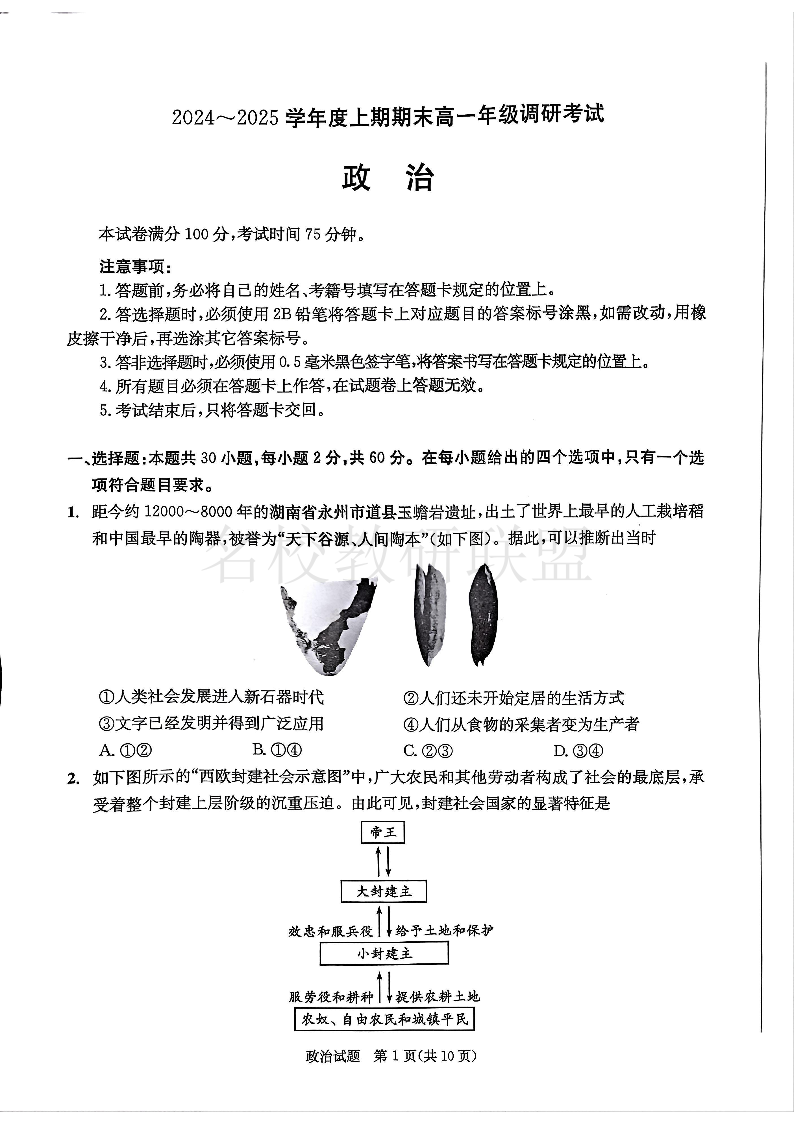 四川省成都市2027届高一上期期末统一调研考试 政治.pdf