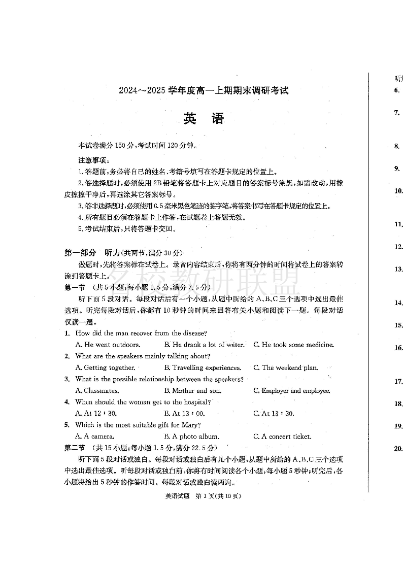 四川省成都市2027届高一上期期末统一调研考试 英语.pdf
