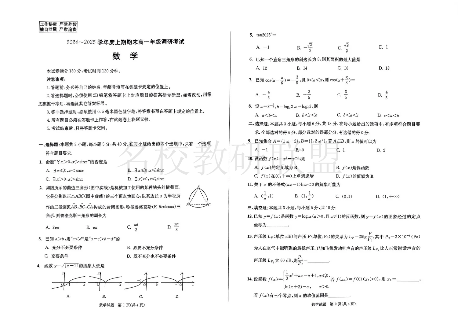 四川省成都市2027届高一上期期末统一调研考试 数学.pdf