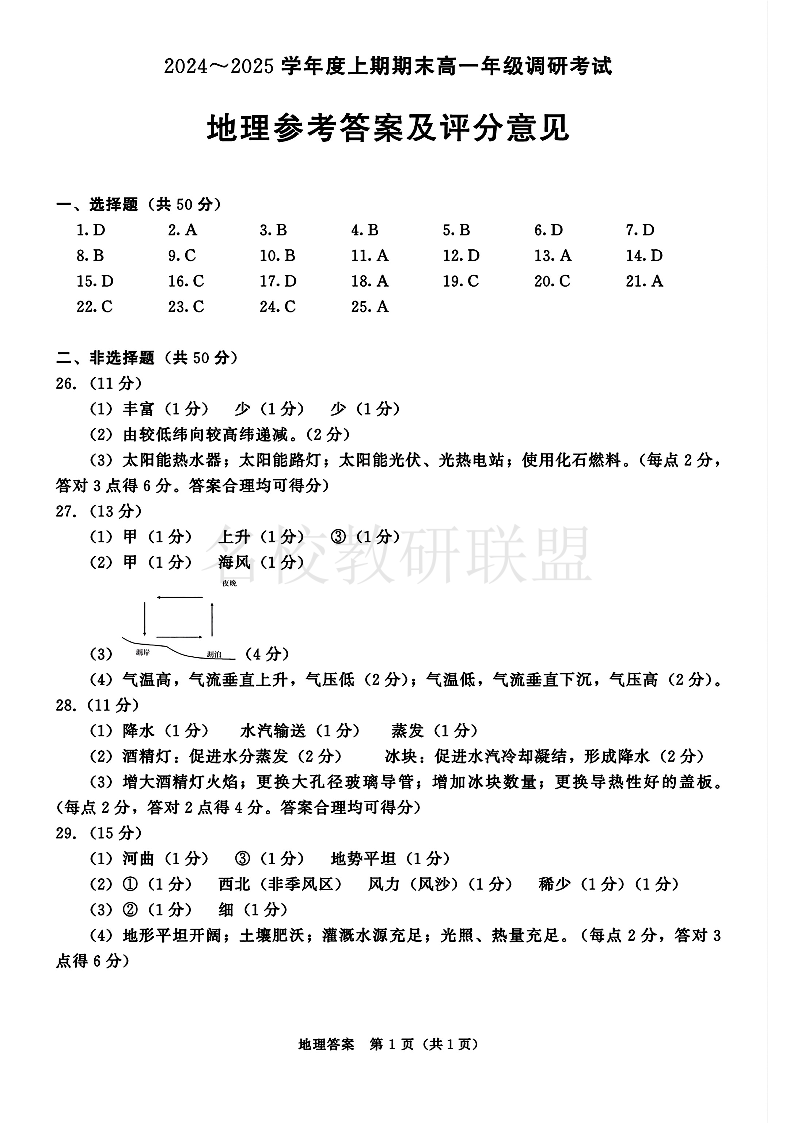 四川省成都市2027届高一上期期末统一调研考试 地理答案.pdf
