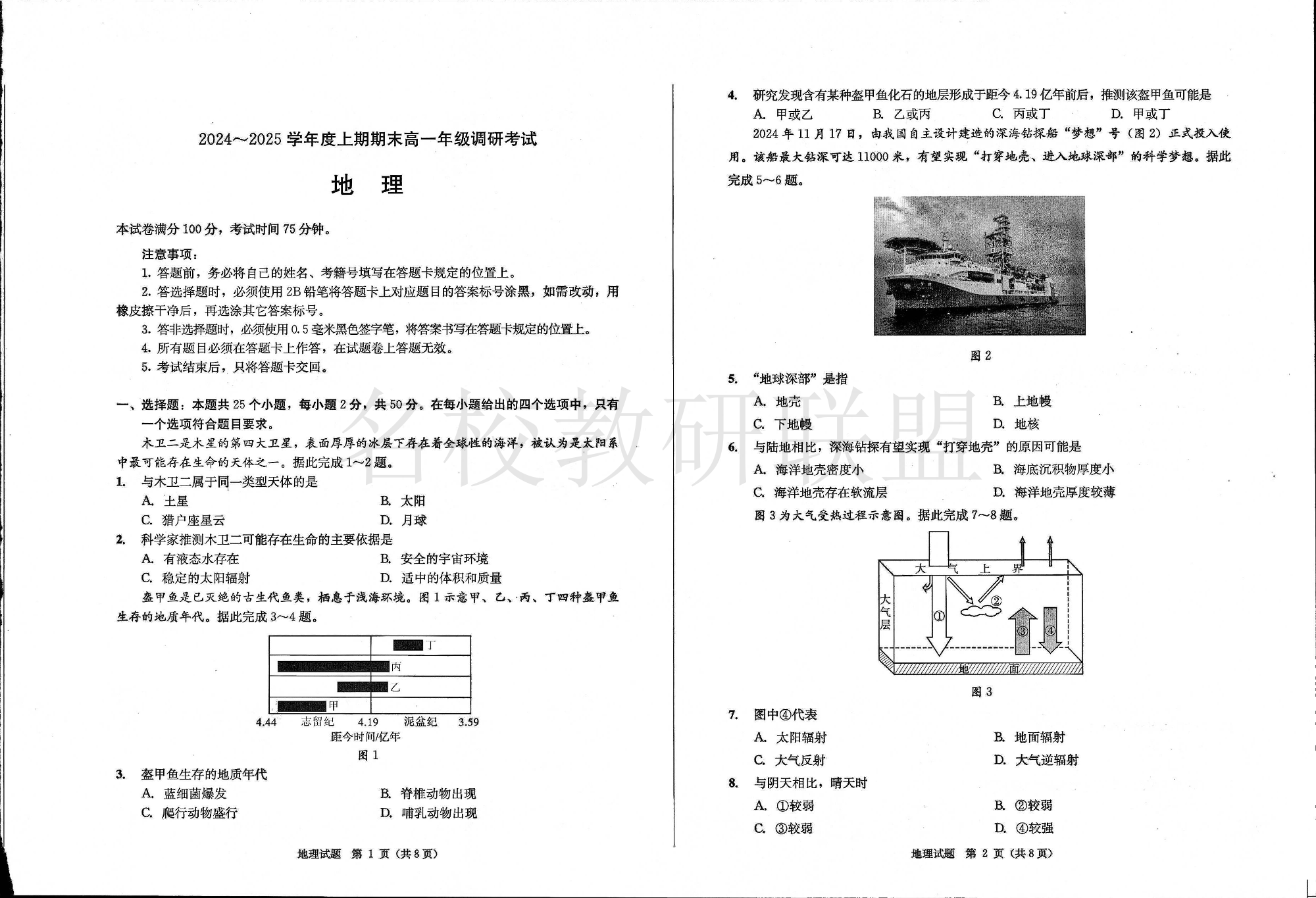 四川省成都市2027届高一上期期末统一调研考试 地理.pdf