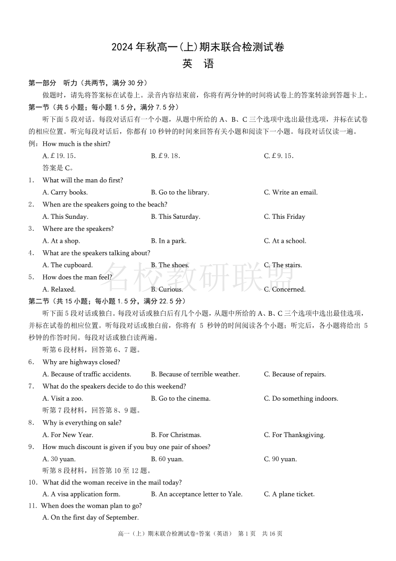 重庆高一期末考试 英语.pdf