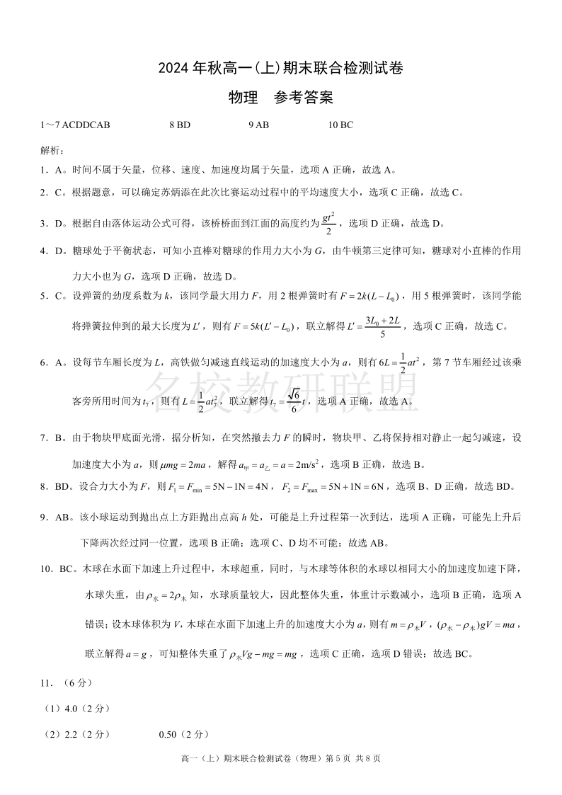 重庆高一期末考试 物理答案.pdf