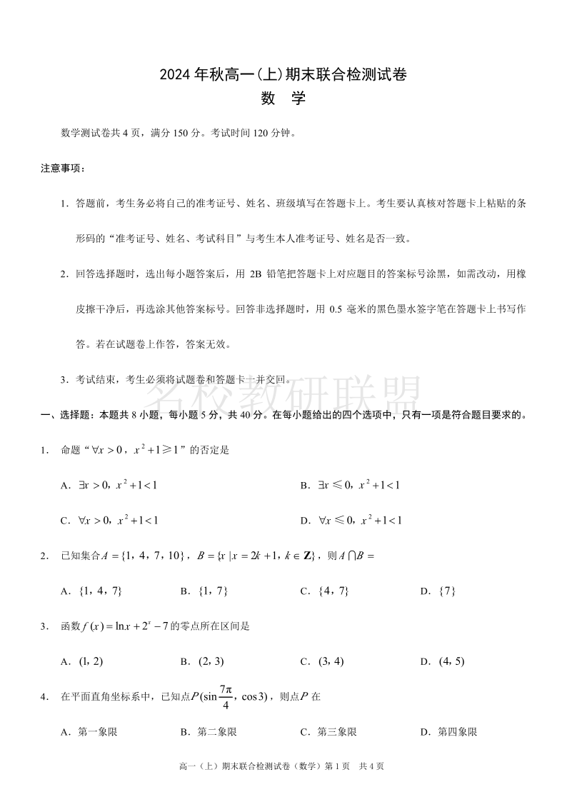 重庆高一期末考试 数学.pdf