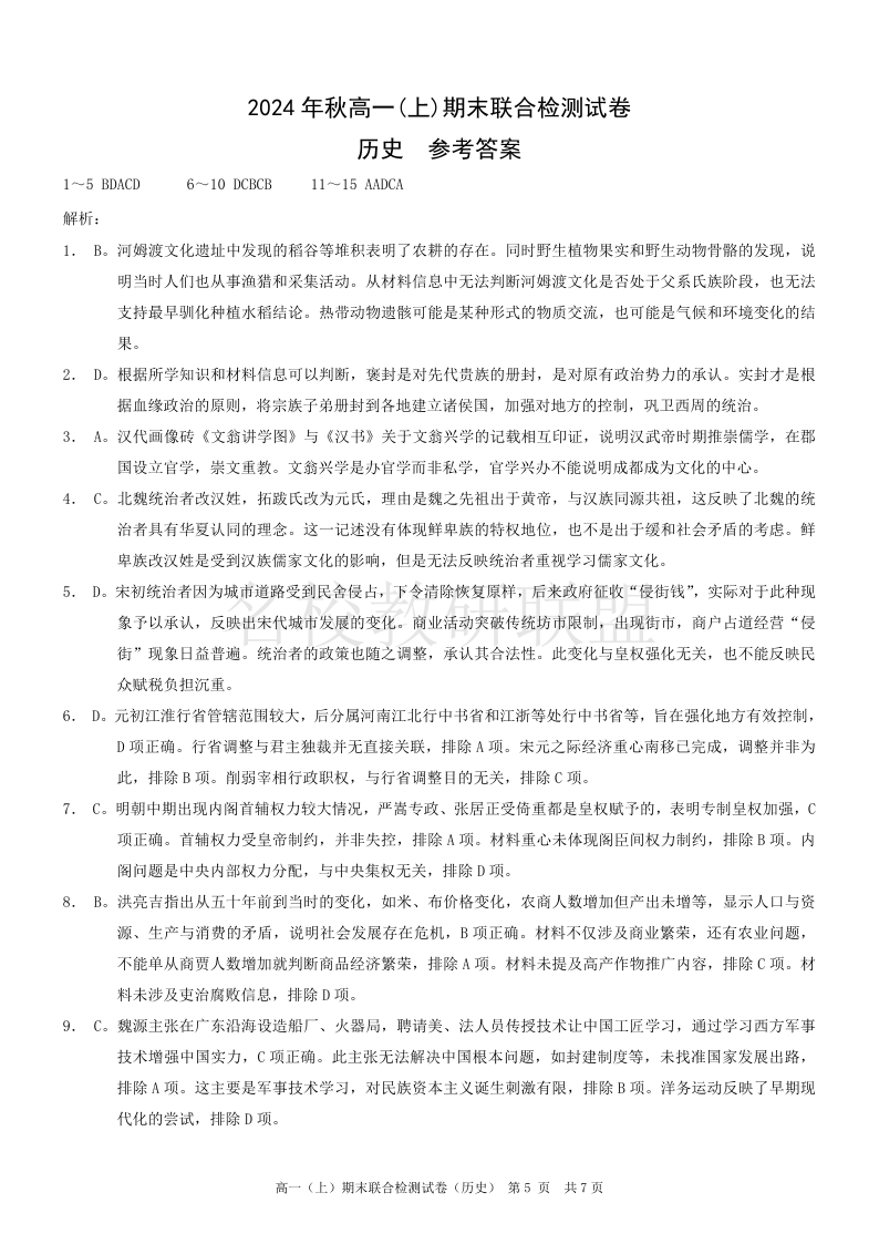 重庆高一期末考试 历史答案.pdf