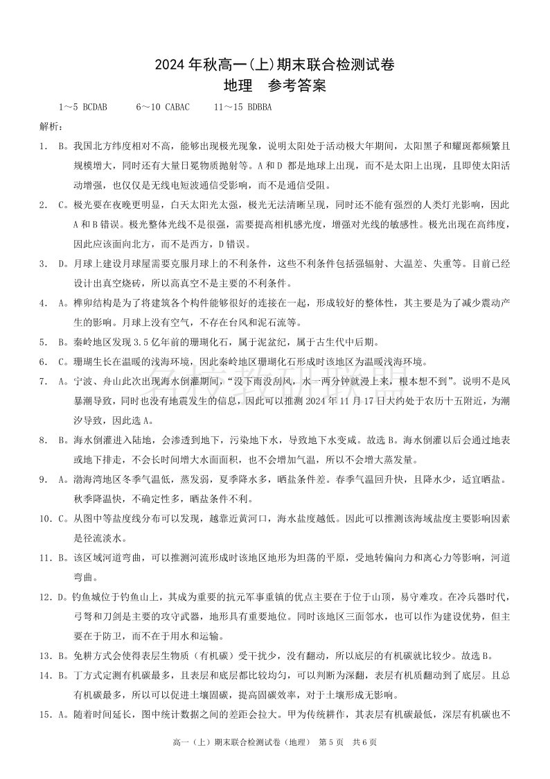 重庆高一期末考试 地理答案.pdf