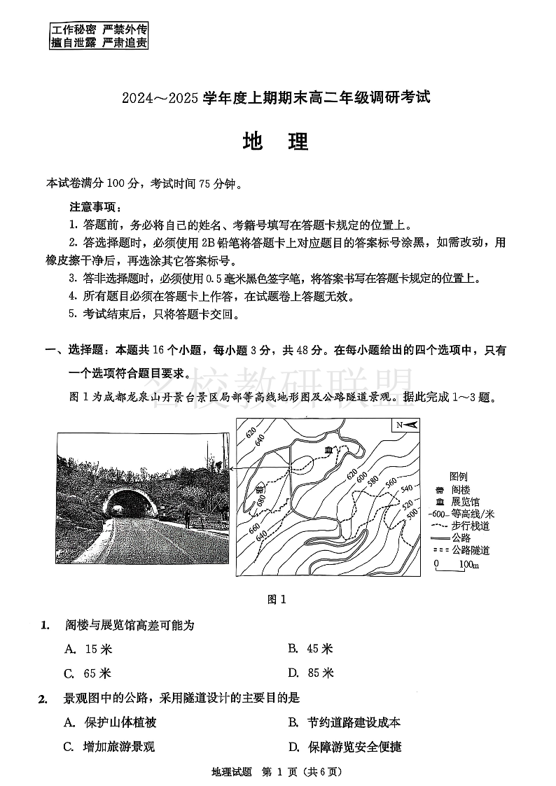 四川省成都市2026届高二上期期末统一调研考试 地理.pdf
