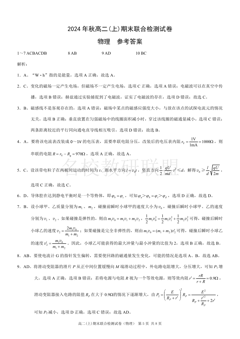 重庆高二期末考试 物理答案.pdf