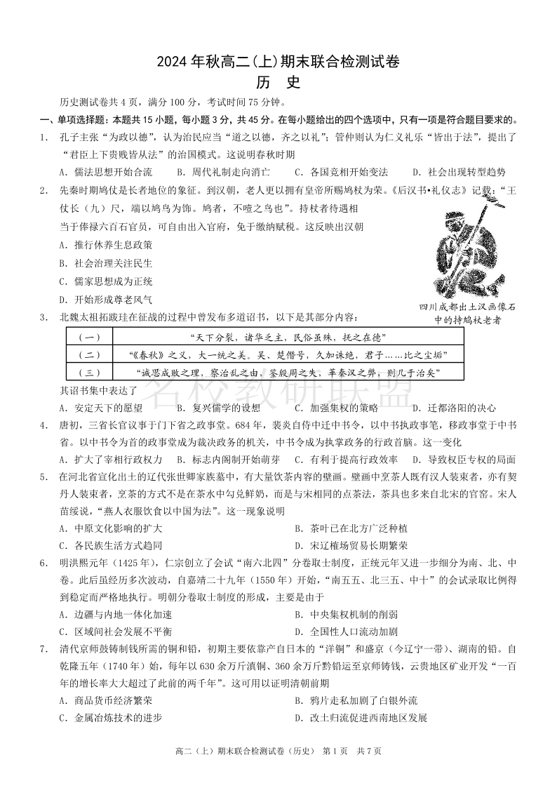 重庆高二期末考试 历史.pdf