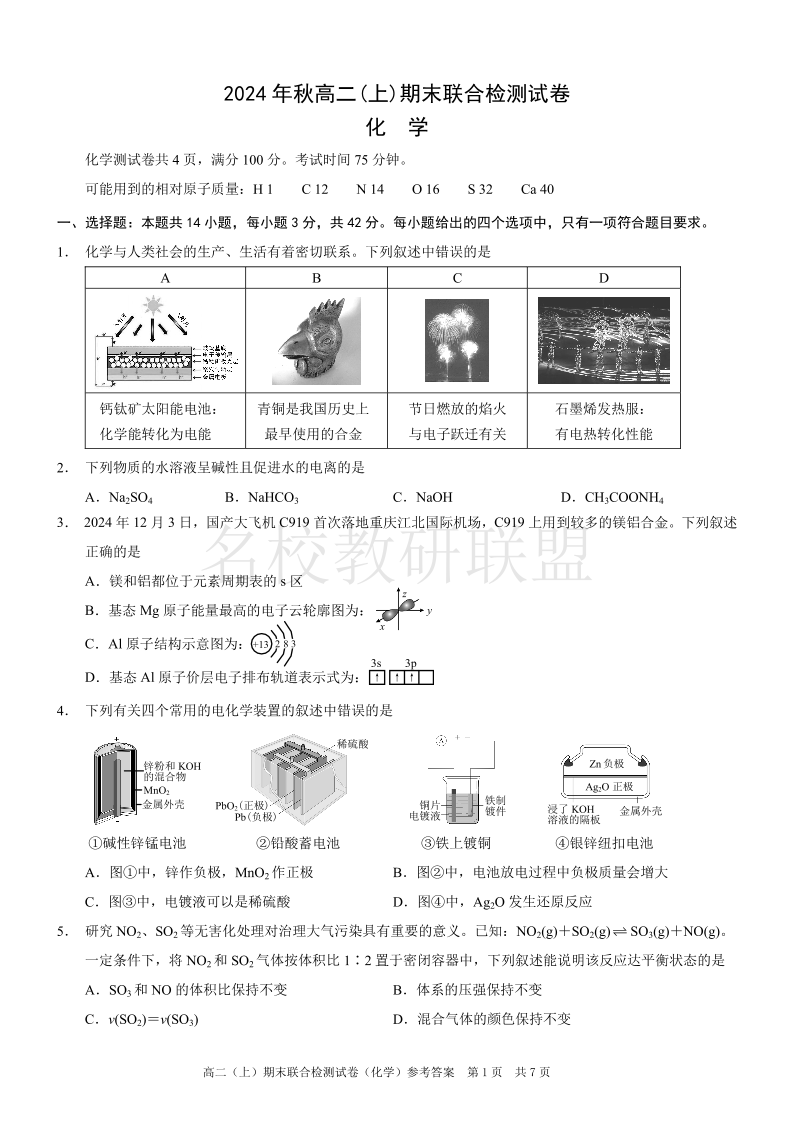 重庆高二期末考试 化学.pdf
