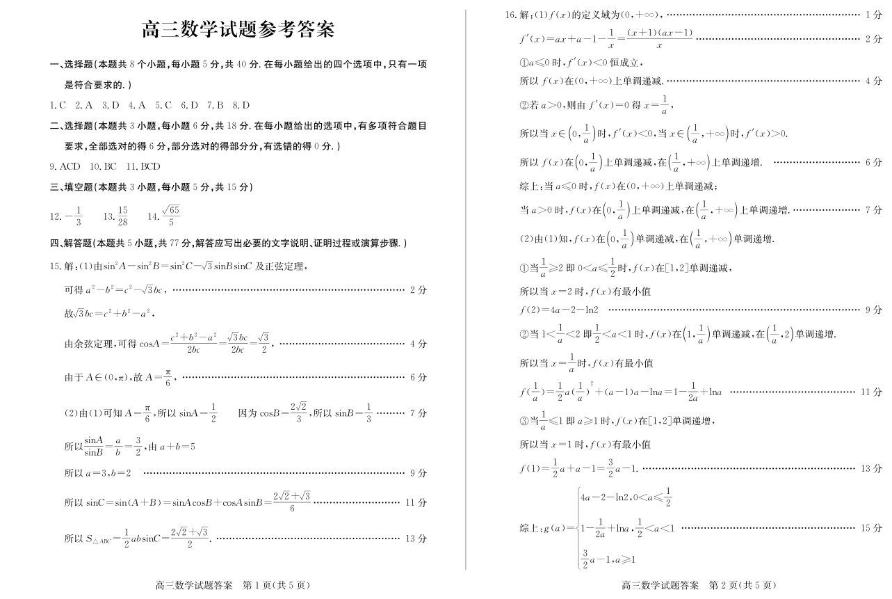 山东省德州市2025届高三上学期1月期末考试 数学答案.pdf