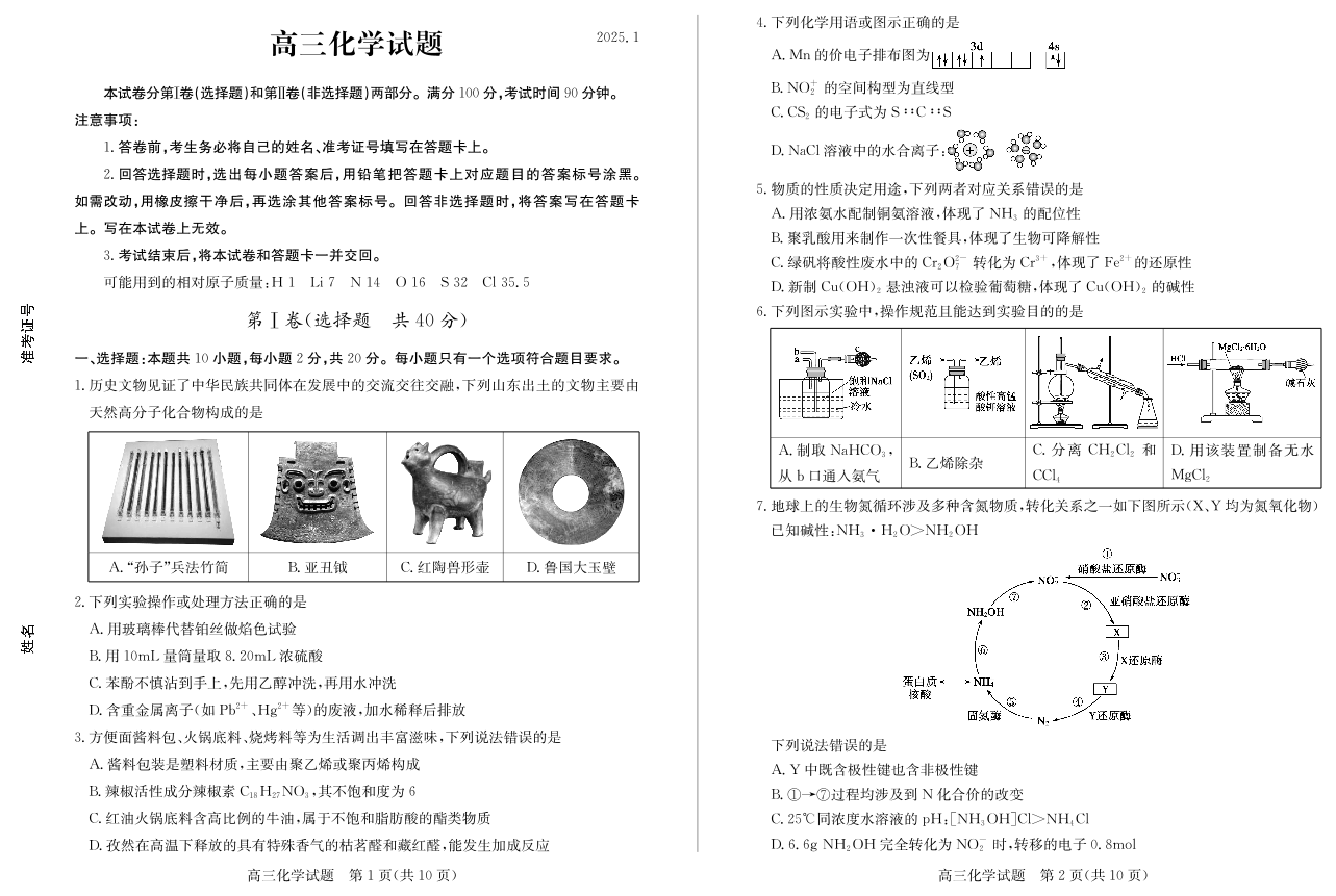 山东省德州市2025届高三上学期1月期末考试 化学.pdf