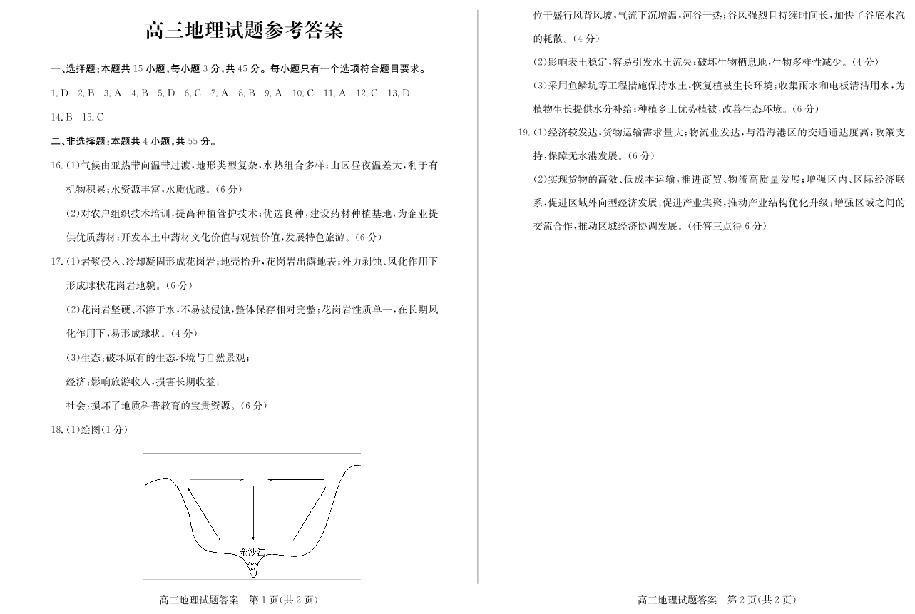 山东省德州市2025届高三上学期1月期末考试 地理答案.pdf