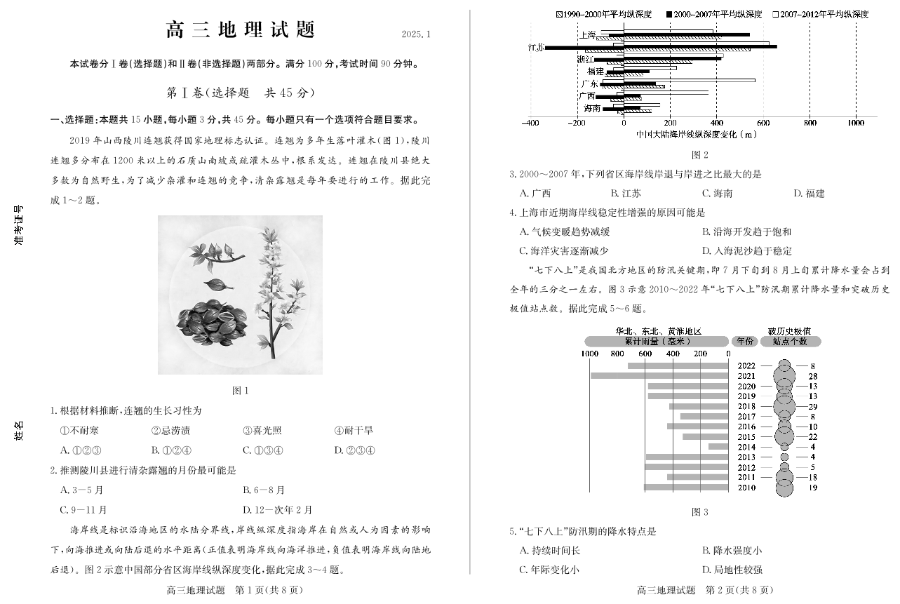 山东省德州市2025届高三上学期1月期末考试 地理.pdf
