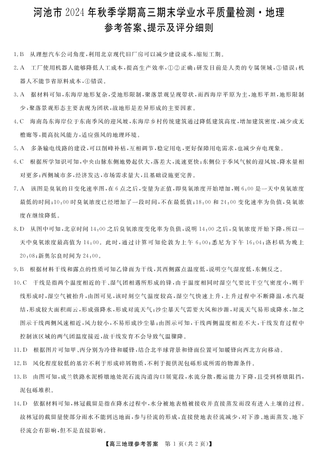 广西河池市2025届高三年级期末教学质量检测 地理答案.pdf