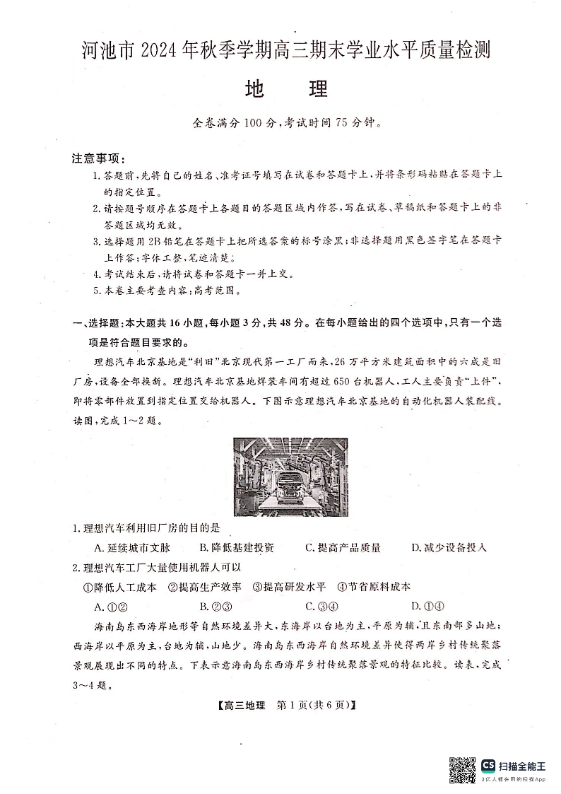 广西河池市2025届高三年级期末教学质量检测 地理.pdf