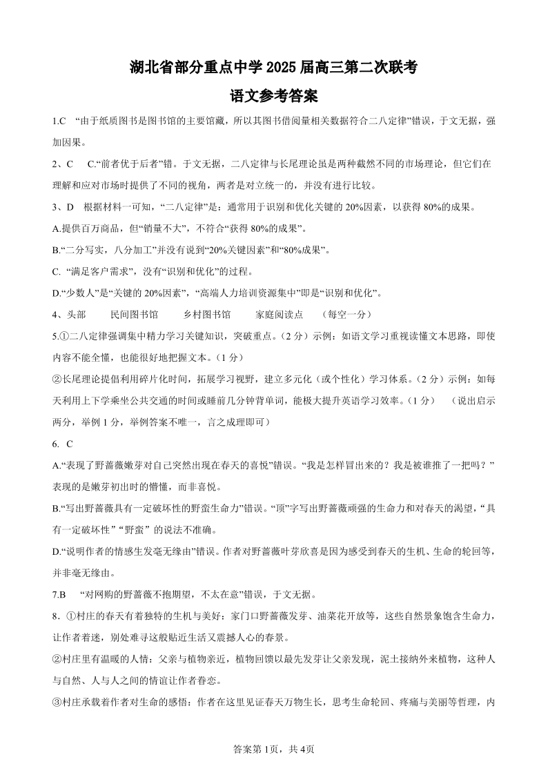 湖北省部分重点中学2025届高三第二次联考 语文答案.pdf