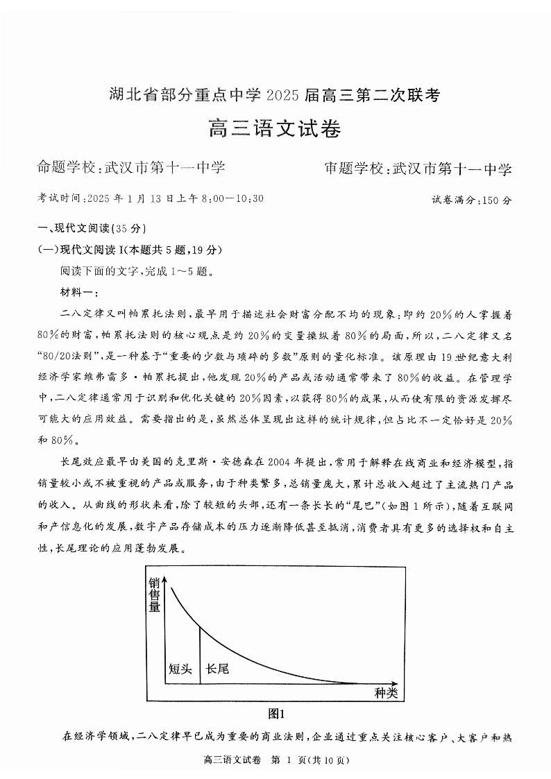 湖北省部分重点中学2025届高三第二次联考 语文.pdf