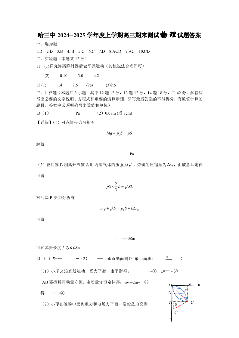 哈三中2024-2025学年度上学期高三学年期末考试 物理答案.pdf